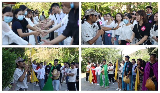 联谊活动分为携手拓展、联谊研讨、钟情告白三个环节。在大家进行简单的个人介绍后,参与人员在活动教练的带领下,召开活动的第一个项目携手拓展“破冰行动”。其中包括选举队长、创建队名、绘制队旗等,旨在攻破队员彼此之间的隔阂,建立彼此信任的基础,为联谊活动打下基础,随后大家依次入园前往鹿雕广场。